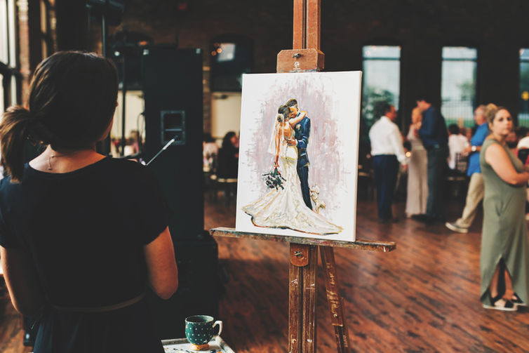 How does it work? You can book Live Artistry at about any event. I have painted and sketched at many events from weddings and baby showers to business Christmas parties. With weddings being the most popular, you will find pricing on this page for that purpose. However, please feel free to reach out about your event for more specific details and pricing! With Live Artistry, sketches and paintings are rendered quickly allowing guest to watch the works develop from a blank canvas to a completed piece in the time that they are there. My work is often focused around the atmosphere we create, I draw inspiration from and feed off of the energy of people. Therefore, I take pleasure in on-site artistry. It's a unique experience for both guest and me.